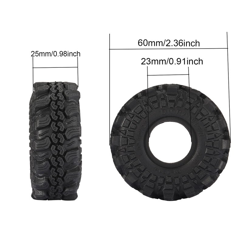 DJCRAWLER Super Soft Sticky 1.0 Wheel Tires Mud Tires 60 * 25mm for 1/18 1/24 RC Crawler Axial SCX24 FMS FCX24 Enduro24 Bronco Defender K10 RC Car Upgrade Wheel Parts