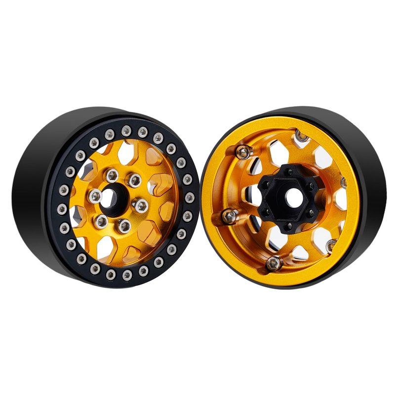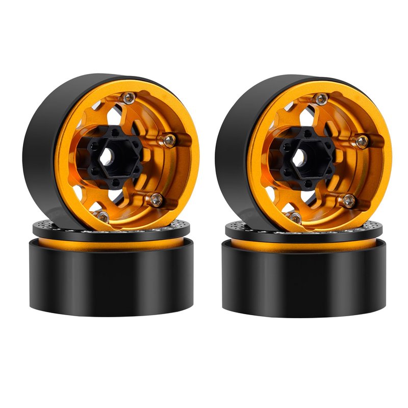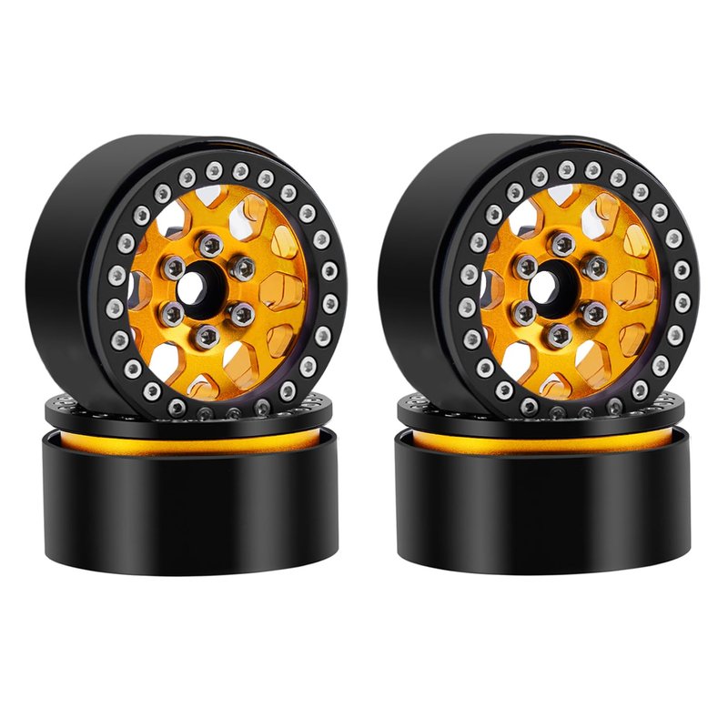 DJX 4PCS 1.9 Inch Beadlock Wheel Hub Rim with 12mm Hex for 1/10 RC Rock Crawler Axial SCX10 SCX10 II 90046 SCX10 III AXI03007 D90 TRX4(Glod)