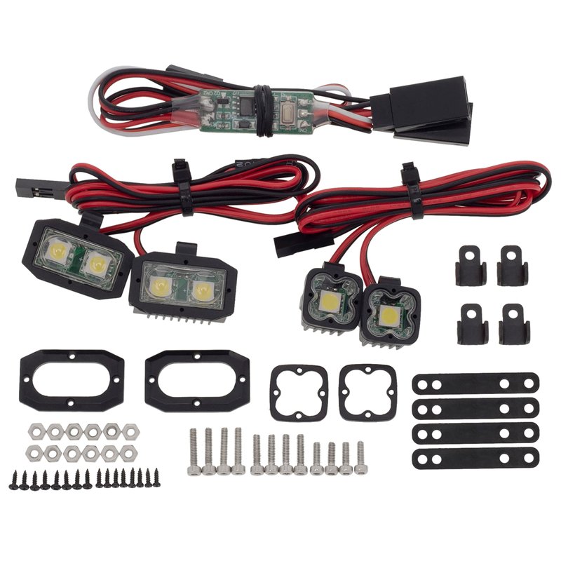 - 2 ways to control: Standard 2.54 JR connector, can be powered by receiver or BEC, (Equipped with CH3 lighting control module, which can realize lighting effects such as switch, breathing, flashing, etc.(with control))support voltage 5-8V, can work directly in 2S LIPO environment.