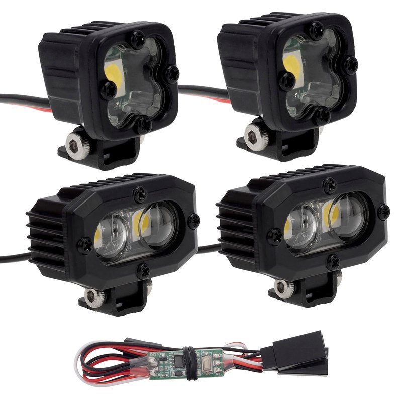 DKKY RC Crawler Lights LED Headlight & Bumper Light with Control for 1/10 RC Crawler Axial SCX10 90046 TRX4, TRX6 Wraith RR10 MST Redcat Gen8, 5050 Square Rc Spotlight 4Pcs Black