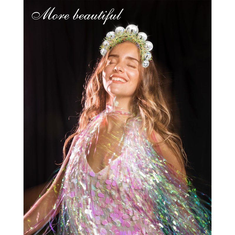 - 【Disco Headband】The disco headband uses a reflective mirror design to make the headband sparkle. There are 7 shiny disco balls on the Disco Ball Head Boppers, looking very retro, creating the perfect disco crown, which can easily put you into the scene of the 1970s, will shine in the light of the light, so you can easily grab the attention of others, making you more attractive and charming. One size fits most.