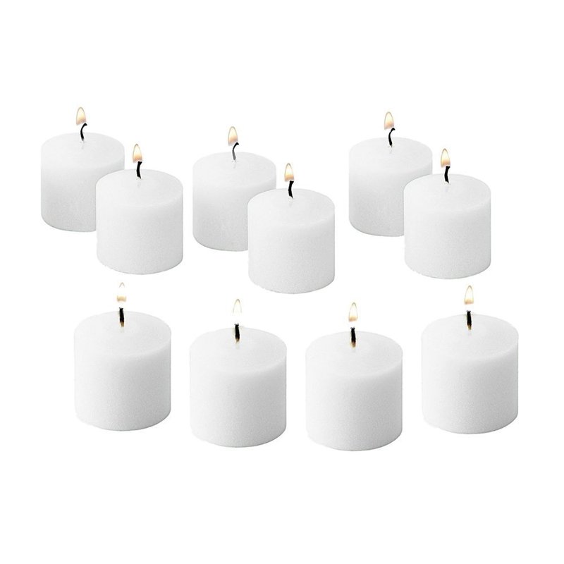 - Long lasting; enjoy up to 10 hours of burn time for everyday use and special occasions; These attractive high quality traditional votive candle are commonly used as party favors, emergency light for power outages, aromatherapy, outdoor patio ambience, place in lanterns as part of centerpieces for a wedding reception, restaurant tables etc becuse of its extended burn time
