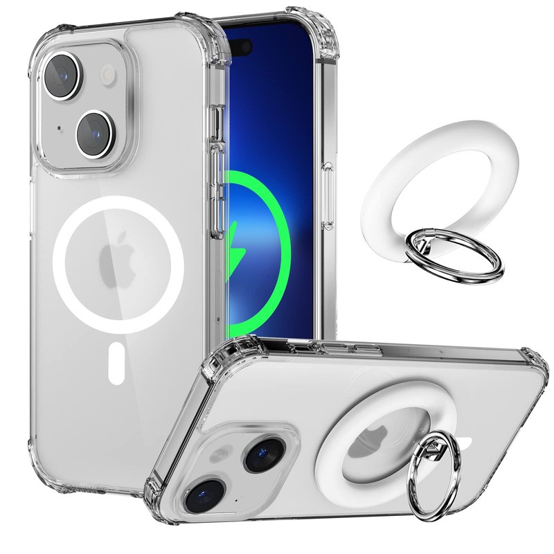 Dlinda 2-in-1 Magnetic Clear Case + Magnetic Phone Grip for iPhone 14, 6.1 Inch - White