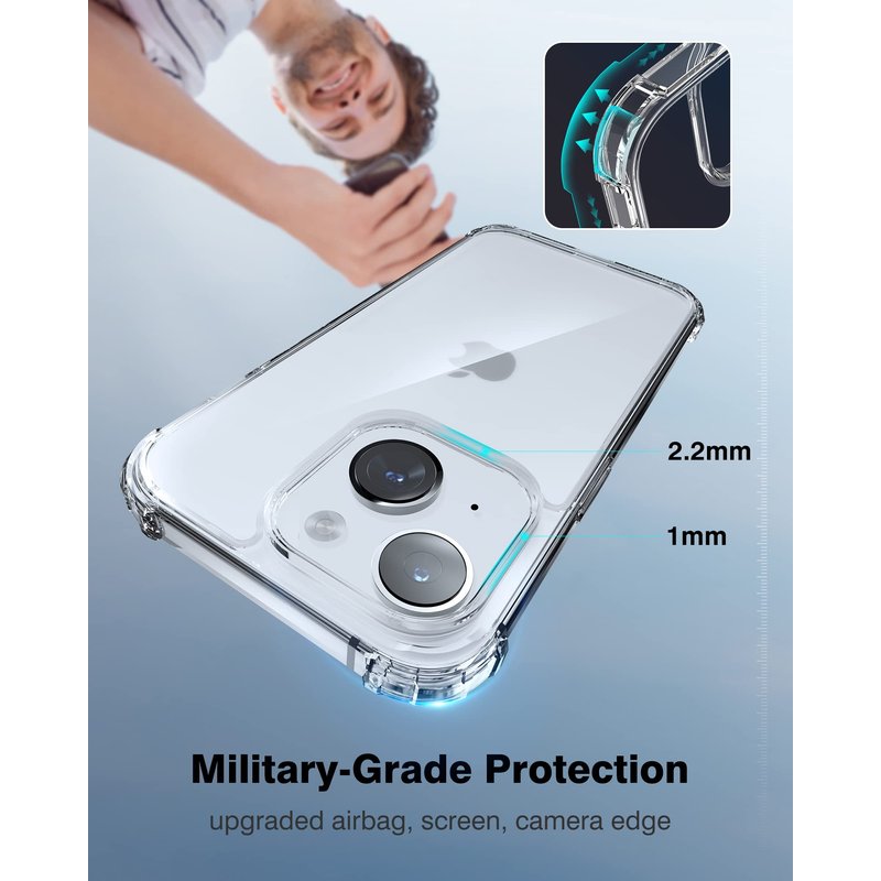 - 【Military-Grade Drop Protection】- Designed with 4 anti-collision airbag conner (thickened to 2.5 mm), disperse the impact force to protect your iPhone from falling. Slightly raised edges offers reassuring screen and lens guard from rubbing or scratching (2.2mm raised camera edge & 1mm raised screen edge). Provides thorough and comprehensive protection for your iPhone 14 6.1 inch.