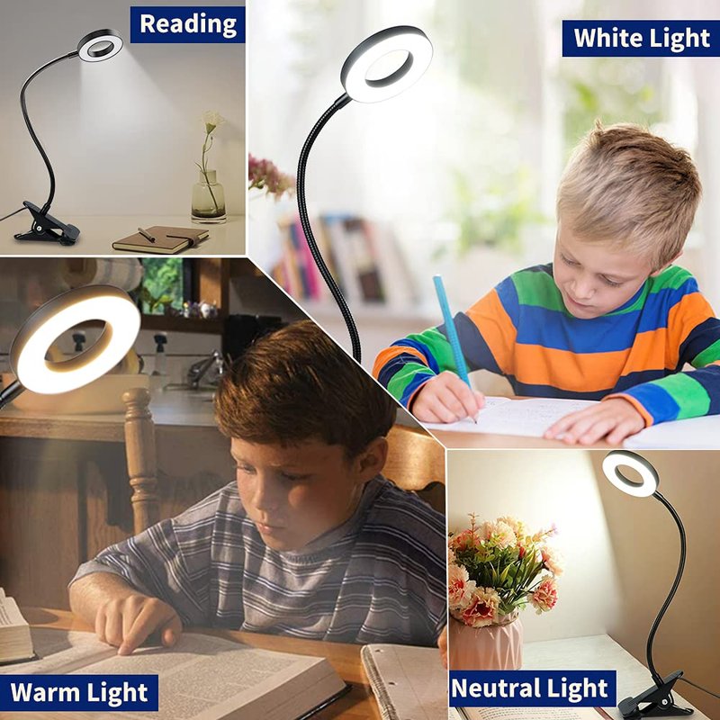 - 🎅【EYE PROTECTION & ECO FRIENDLY】 This reading clip book light build-in high-quality LED chips, which is comfortable, non-flickering, and does not generate radiation. Our USB desk lamp is friendly to your eyes and can reduce eye fatigue. Environmentally friendly LED desk lamps consume 80% less electricity. No IR and UV radiation. 🎁 Perfect birthday gift for kids.