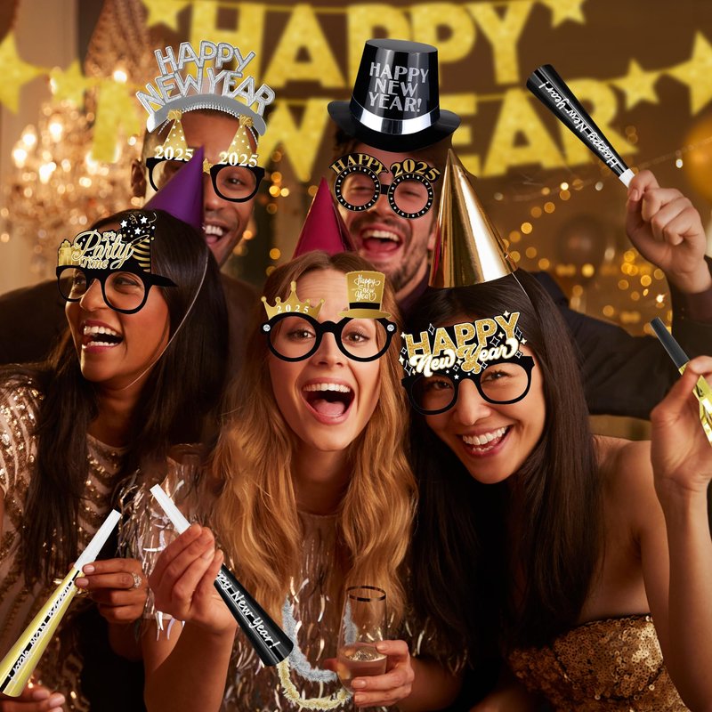 - New Year’s Eve Theme: Featuring elegant black, gold, and silver colors with “2025” designs, this set perfectly captures the New Year’s spirit. Whether you're hosting a family gathering or a party with friends, these accessories are ideal for creating unforgettable memories and amazing photo opportunities.