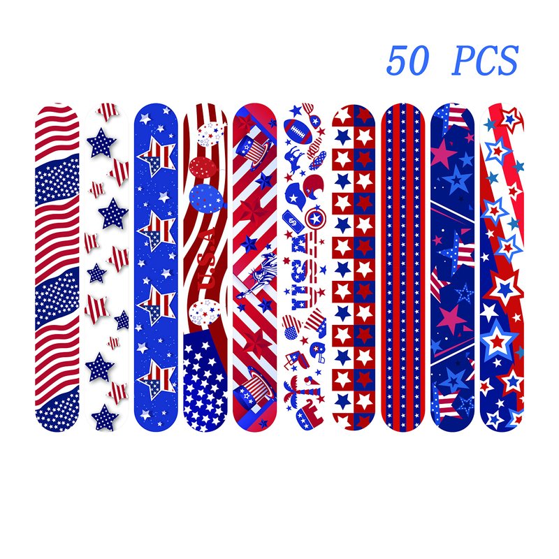 The set includes50pcs Independence Day slap bracelets,which can bring every user a lot of fun and a strong holiday atmosphere.
