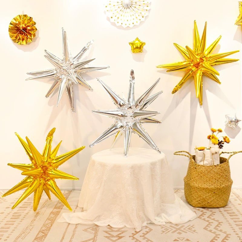 Easy to Use: Different from others starburst balloons need to assemble,explosion star balloons are one-piece with 14 cones, so you do not have to assemble the cones on by yourself. Only need to use a straw or air pump to inflate the star balloons. There are holes on the top to string, you can string the star balloon with a line and hanging on balloon garland or balloon arch. Also can use dot glue to hang it on the backdrop or where you need. Perfect addition to theme parties celebration.