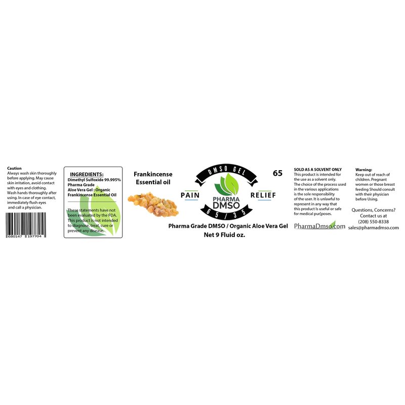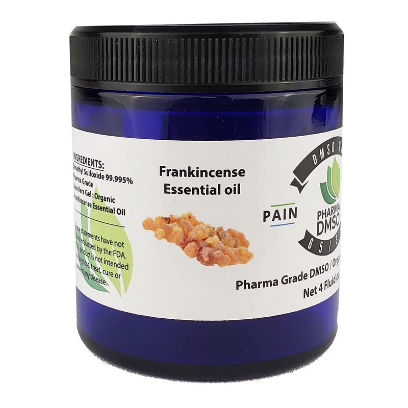 PharmaDMSO's Pharma Grade DMSO gel infused with Certified Organic Frankincense Essential Oil. This Formulation contains 65% DMSO, 35% with Frankincense Essential Oil