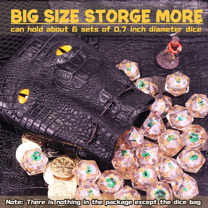 - 【Not only the dice bag but also the coins pouch】 The surface of the dnd dice bag is made of PU leather with the texture of dragon skin, and it is soft. The soft lining of the black dragon coins pouch is intended to provide the best possible protection for your dice and coins. You can use it to perfectly manage your favorite dice, coins, and other props!