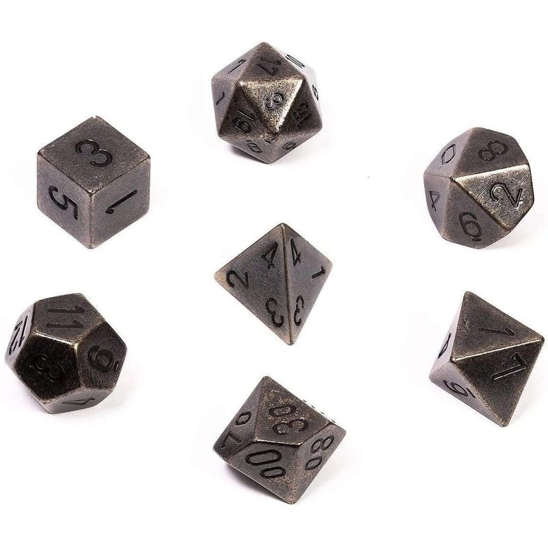 DND Dice Set-Chessex D&D Dice - 16mm Dark Metal Polyhedral Dice Set-Dungeons and Dragons Dice Includes 7 Dice - D4 D6 D8 D10 D12 D20 D%