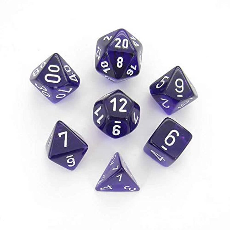 DND Dice Set-Chessex D&D Dice-16mm Translucent Purple and White Plastic Polyhedral Dice Set-Dungeons and Dragons Dice Includes 7 Dice - D4 D6 D8 D10 D12 D20 D% (CHX23077)