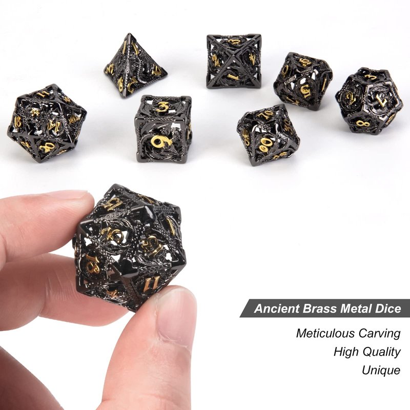 - 1. 【Unique design】New and unique metal diceThe design of this dice is inspired by the ancient dragon, and the exquisite dragon pattern makes it add an ancient and mysterious feeling to the game, so that GM can better show it in Dungeons and Dragon.