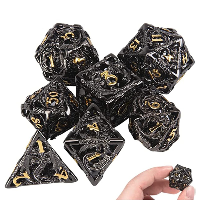 DND Dice,Hollow D&D Metal Dice,Dungeons and Dragons Dice Set with Gift Box,7 PCs Steampunk Polyhedral Dice Games Set for RPG,MTG,Pathfinder, (Dragon Black Golden)