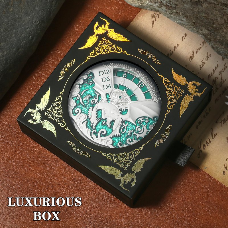 - Package:Luxulious gift box with foam liner decorated with laser dragons, there is a window on the top of the gift box for easy display and collection.An amazing gift for dnd player.