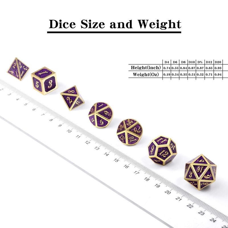 DNDND Glitter Purple Metal Dice Set, Solid Polyhedral DND Metallic Dice with Free Metal Case for Role Polying Game Dungeons and Dragons