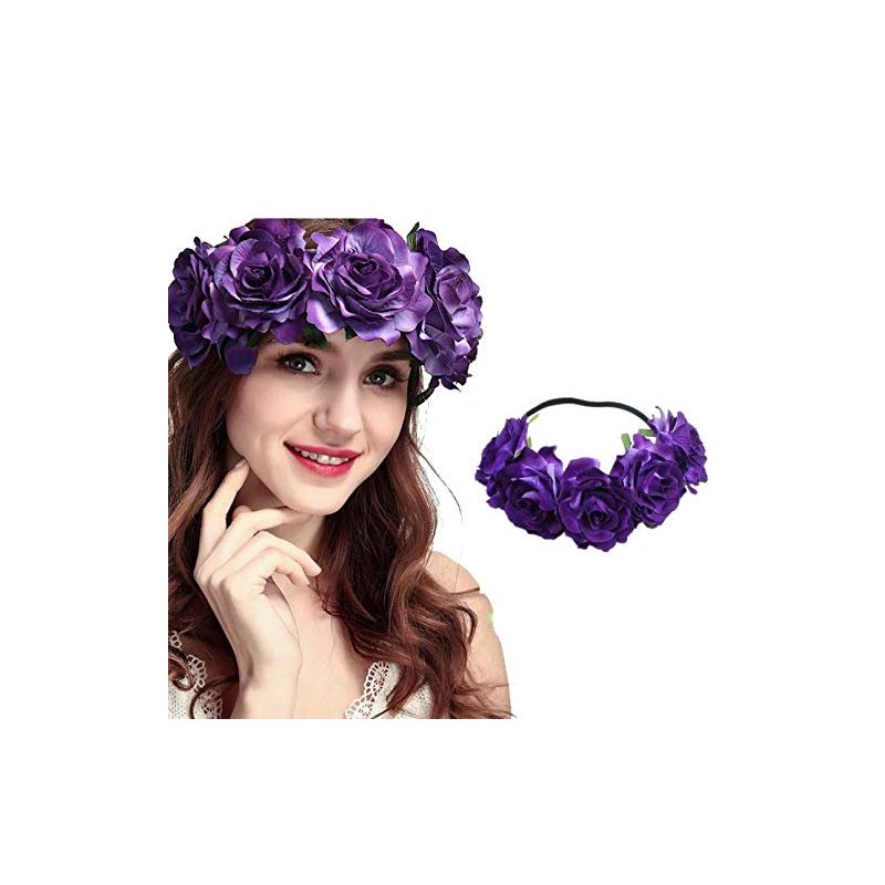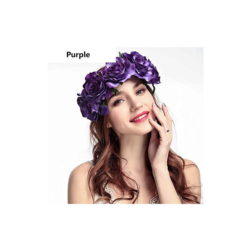 DNHCLL Rose Flower Crown Fake Flower Crowns Headbands For Women Girl Rose Floral Head Piece Hair Crown Pet Headband Flower Wreath (Purple)