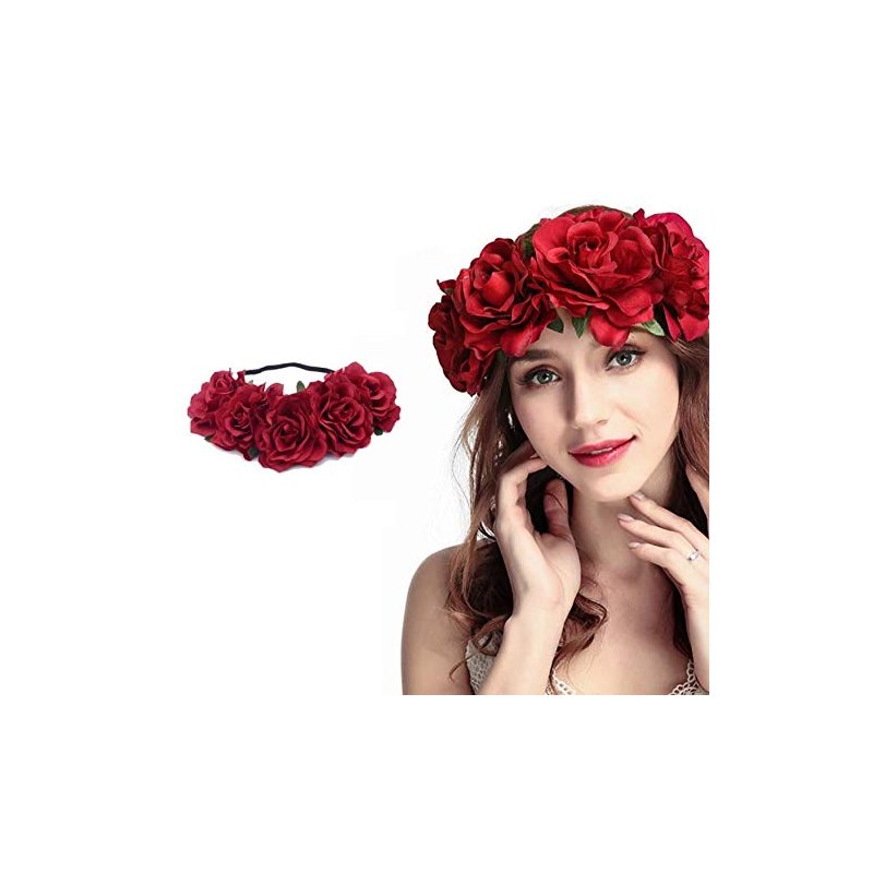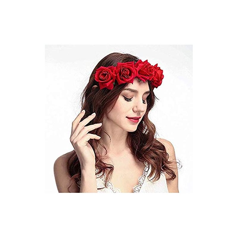 DNHCLL Rose Flower Crown Fake Flower Crowns Headbands For Women Girl Rose Floral Head Piece Hair Crown Pet Headband Flower Wreath (Red)