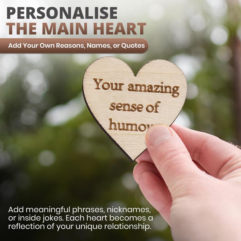 - 10 BEAUTIFULLY ENGRAVED MESSAGES - each wooden heart carries a unique and loving statement, including 'You make me so happy,' 'Your amazing sense of humour,' 'You’re beautiful inside and out,' and 'You give the best cuddles.' Together, these 10 tokens create an intimate, personal gift that brings joy, reassurance, and warmth every time your loved one reads them. It’s a gift that keeps on giving