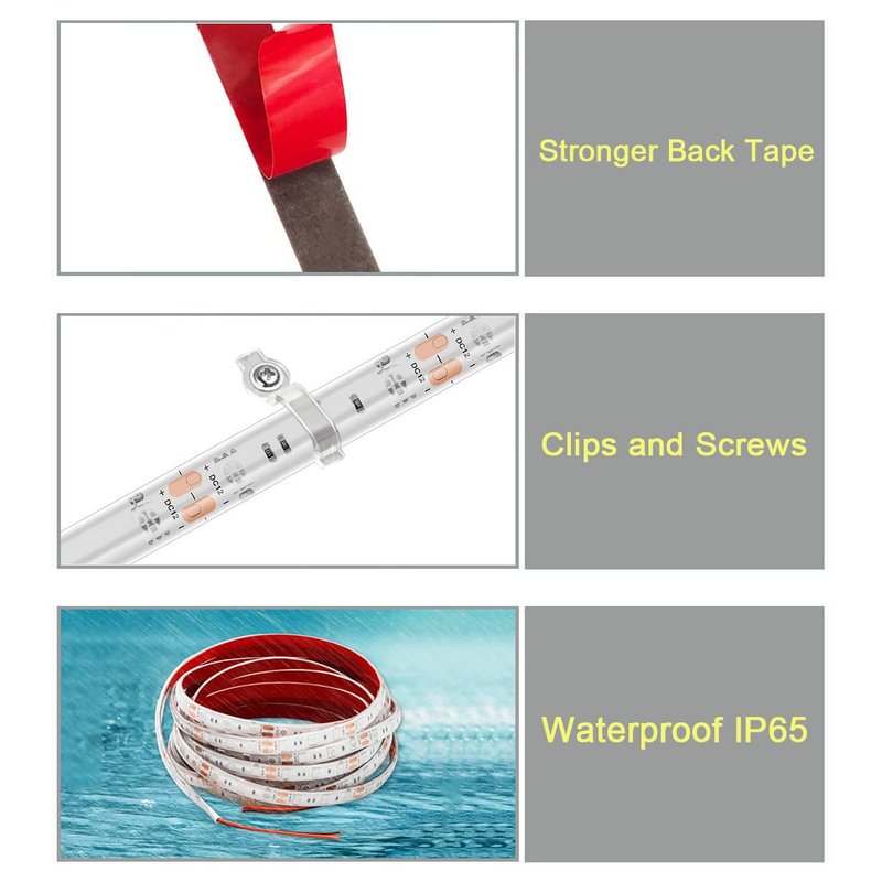- [PACKAGE INCLUDES] - 1pcs 5m(16.4ft) Dc12v Rv Underglow Led Light with Strong Self-adhesive Tape + 10pcs Clips and Screw.