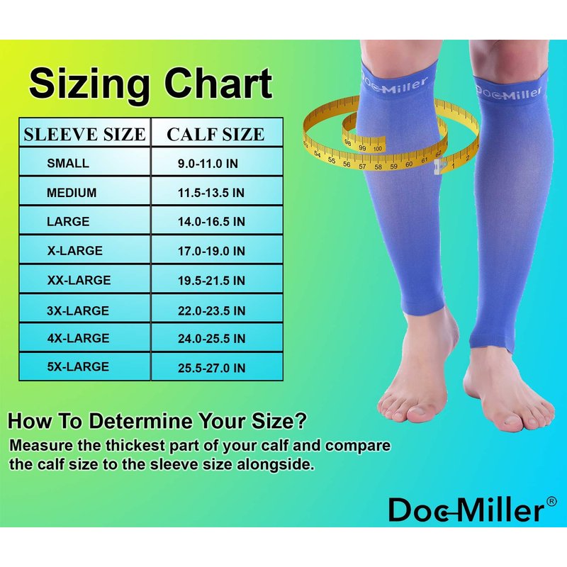 Doc Miller Calf Compression Sleeve 1 Pair 15-20 mmHg Firm Support Graduated for Sports Running Recovery Shin Splints Varicose Veins (Blue, M)
