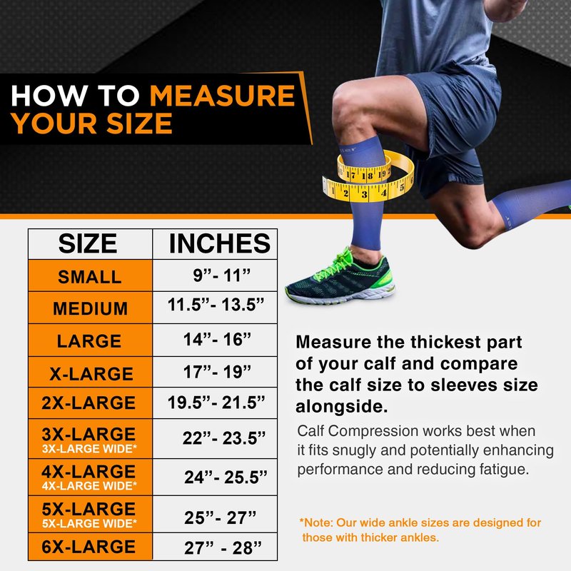 Follow our sizing chart guide in the pictures area to determine your size. We have a wide range of compression sleeve sizes including small and plus sizes up to 3XL.