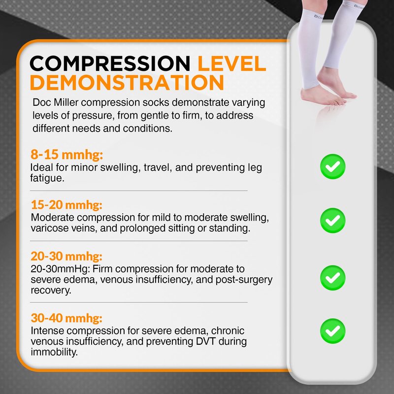Doc Miller Calf Compression Sleeves are made of Durable, Breathable, Comfortable, Premium fabric made of high-grade Nylon (77%) and Spandex (23%) for a snug, compressive fit. The medical sleeves best aid in faster recovery for improved performance and support.
