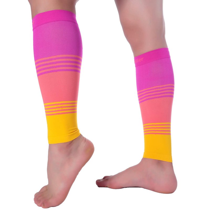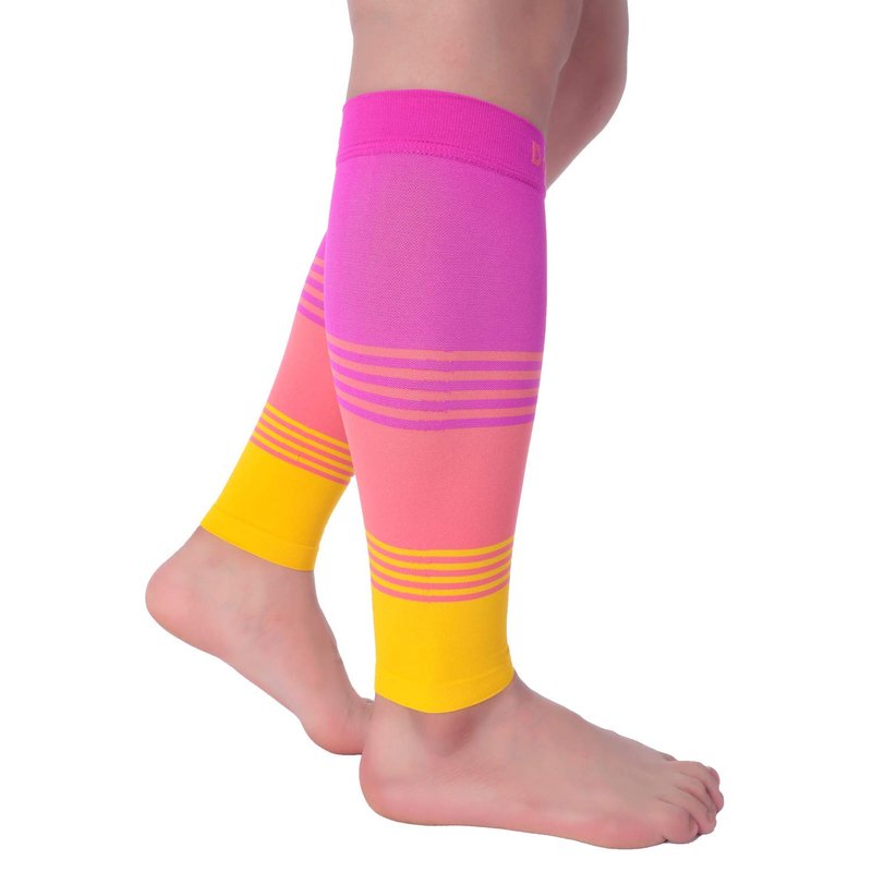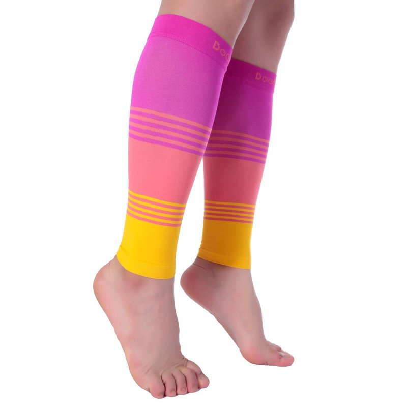 Doc Miller Calf Compression Sleeve Men and Women 20-30 mmHg, Shin Splint Compression Sleeve for Varicose Veins and Maternity 1 Pair ( Pink Peach Yellow, Small)