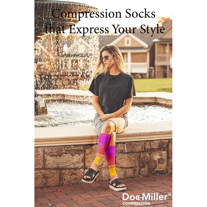 Doc Miller calf compression sleeves for men and women with the strength of 20-30mmHg are designed for greater strength than regular calf compression sleeve available. They have good compression for snug fit that makes allows for recovery from tendon and calf injuries. Compression calf sleeves men and women are designed for daily use at home or the workplace. Premium quality nylon and spandex fabric is used in the shin splint compression sleeve, for graduated compression of 20-30mmHg, which may provide relief, and recover leg cramps, muscle soreness due to long- standing or sitting job. These footless compression sleeves for men and women are a product for daily use, worn either at work or during sports. These leg sleeves will protect and comfort your legs from shin splints or torn calf muscles. Wear them with confidence and style. We at Doc Miller always strive to provide you with great products that provide the required compression, pain relief, and comfort you are looking for. We have a wide variety of compression socks, you can get knee-high compression socks, thigh high stockings, toeless compression sleeves, elbow braces, ankle sleeves, and calf sleeves in different colors, sizes, plus sizes, compression and patterns.