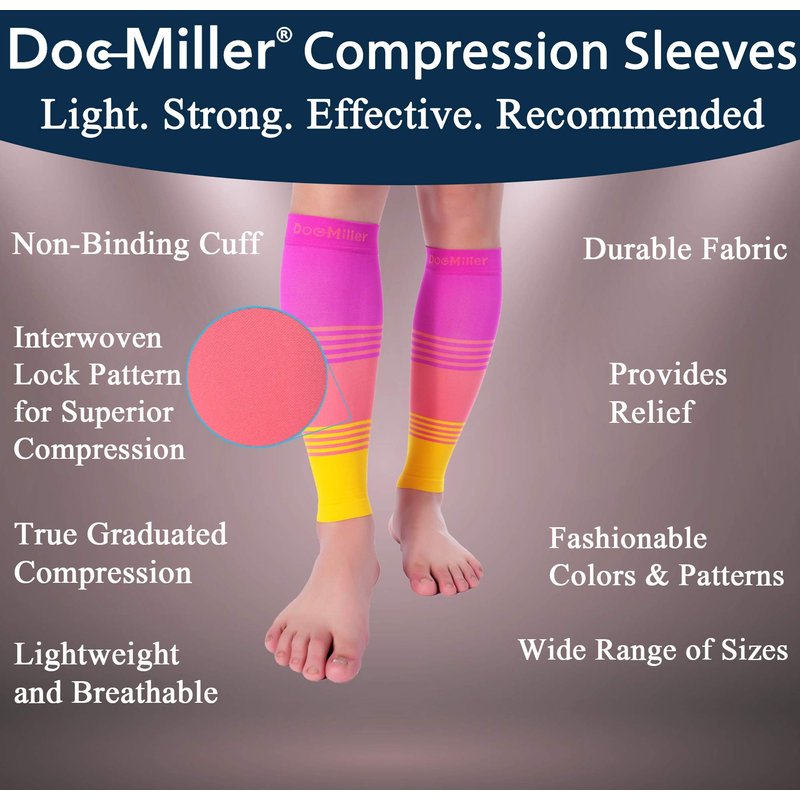 - Doc Miller medical grade calf compression sleeve for shin splints supports ligaments and tendon, boosts circulations, may help to recover from leg cramps, edema, sore muscles, varicose veins, and torn calf.