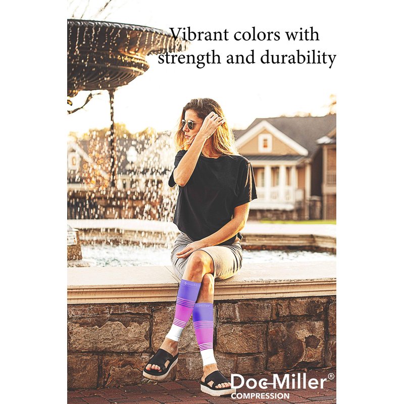 - Doc Miller 20-30mmhg calf compression sleeves women is made of high quality nylon and spandex blend fabric making them durable, lightweight, washable without losing compression.