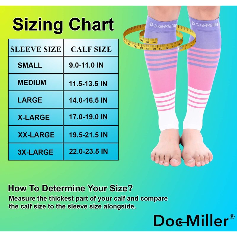 - Doc Miller medical grade calf compression sleeve for shin splints supports ligaments and tendon, boosts circulations, may help to recover from leg cramps, edema, sore muscles, varicose veins, and torn calf.