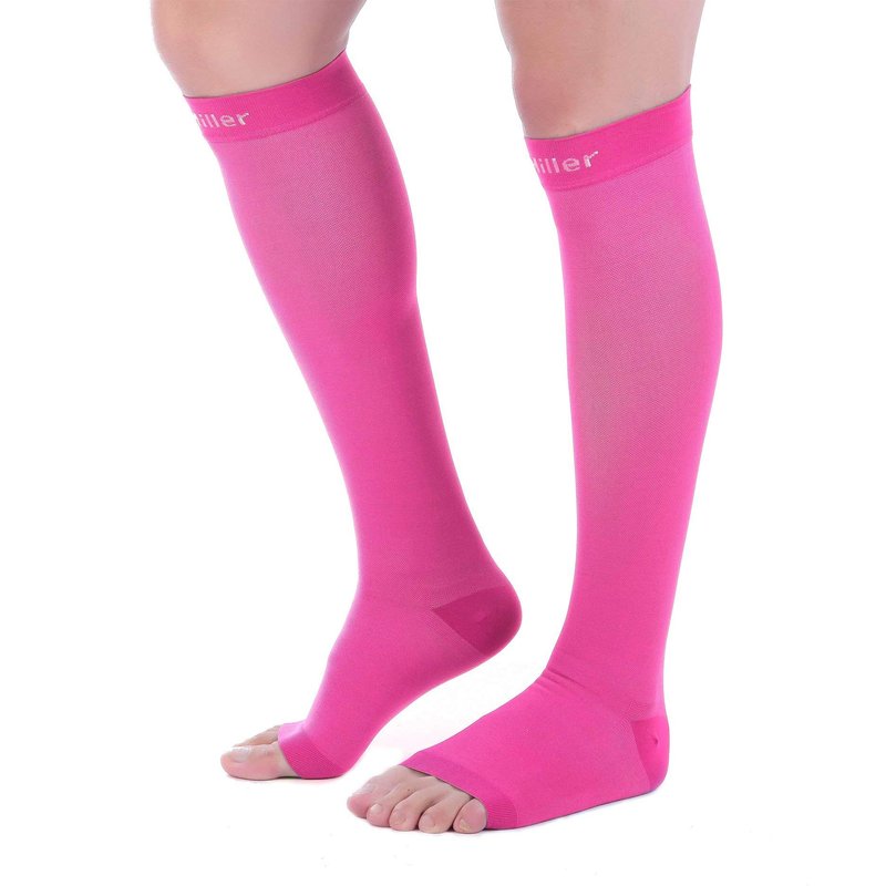 - Doc Miller open toe socks women are for everyday use, perfect for travelers, nurses, doctors and outdoor workers. The snug fit of toeless compression socks for men ensures comfort and pain relief.