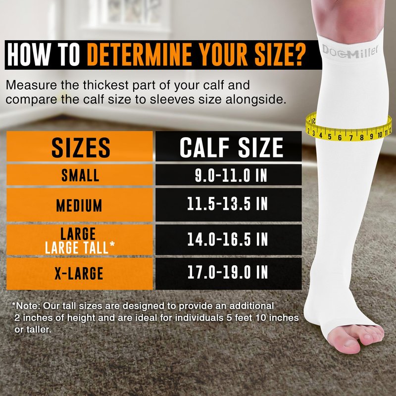 "Experience unparalleled comfort and therapeutic benefits with Doc Miller Toeless Compression Stockings for Women and Men. Crafted with washable Nylon material, our medical-grade compression socks provide superior support and relief for a range of conditions, including calf and shin splints, spider and varicose veins, plantar fasciitis, and edema. Whether you're a dedicated athlete seeking enhanced muscle recovery or a hardworking professional in need of all-day comfort, our open-toe compression socks are your ultimate solution. Designed to promote circulation and alleviate discomfort, these compression stockings are ideal for pregnant women seeking relief from swelling and discomfort. With a precise and snug fit, they allow for unrestricted movement throughout the day. Perfect for use with sportswear for added protection and strength, these socks are also a go-to choice for individuals with jobs that require long hours on their feet. Choose from a variety of colors and compression strengths to match your style and preferences. Whether you prefer subtle neutrals or vibrant hues, our selection has something for everyone. With compression strengths ranging from 30-40mmHg, you can select the perfect level of support to meet your needs. At Doc Miller, we're dedicated to providing products that deliver exceptional results and unparalleled comfort. Our comprehensive collection includes not only open-toe compression socks but also full-length compression socks, thigh-high stockings, toeless compression sleeves, elbow braces, ankle sleeves, and calf sleeves. Available in various sizes, colors, and patterns, our products cater to diverse needs and preferences. Experience the difference with Doc Miller's open-toe 30-40mmHg compression stockings and discover the ultimate relief and support you deserve. Invest in your well-being today and elevate your comfort and performance with our compression solutions.