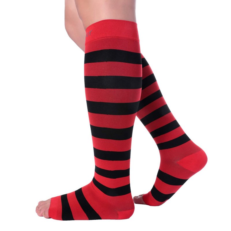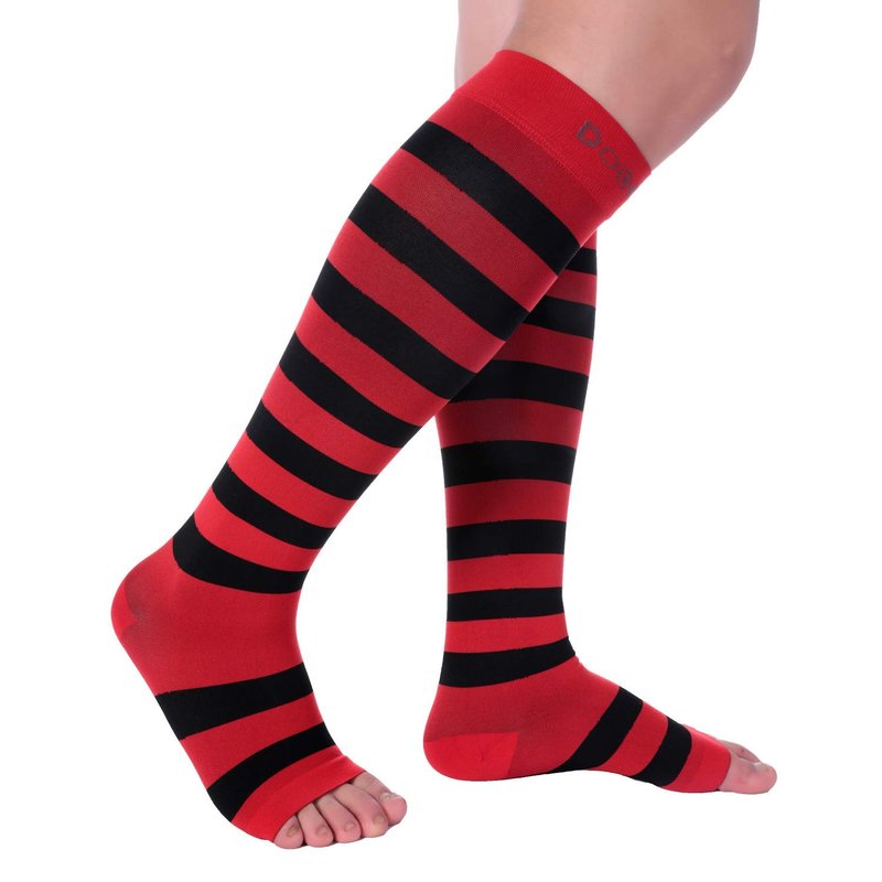 - Color Choice: Two colors stripes pattern open toe socks for women can be used as maternity compression socks, travel socks, or for those who have long-standing hours such as beauticians, doctors and nurses