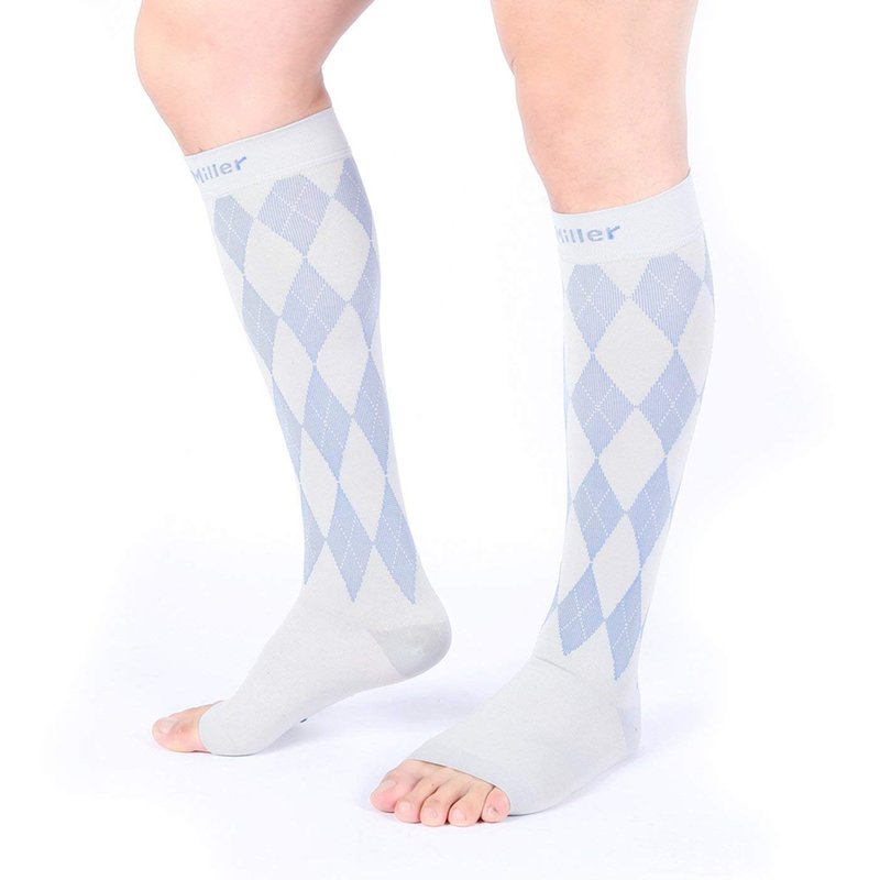 Doc Miller Open Toe Compression Socks Women 20-30mmhg - Argyle Design Toeless Socks for Sports Running Shin Splint Varicose Veins Socks - Toeless Compression Socks Women and Men - 1 Pair