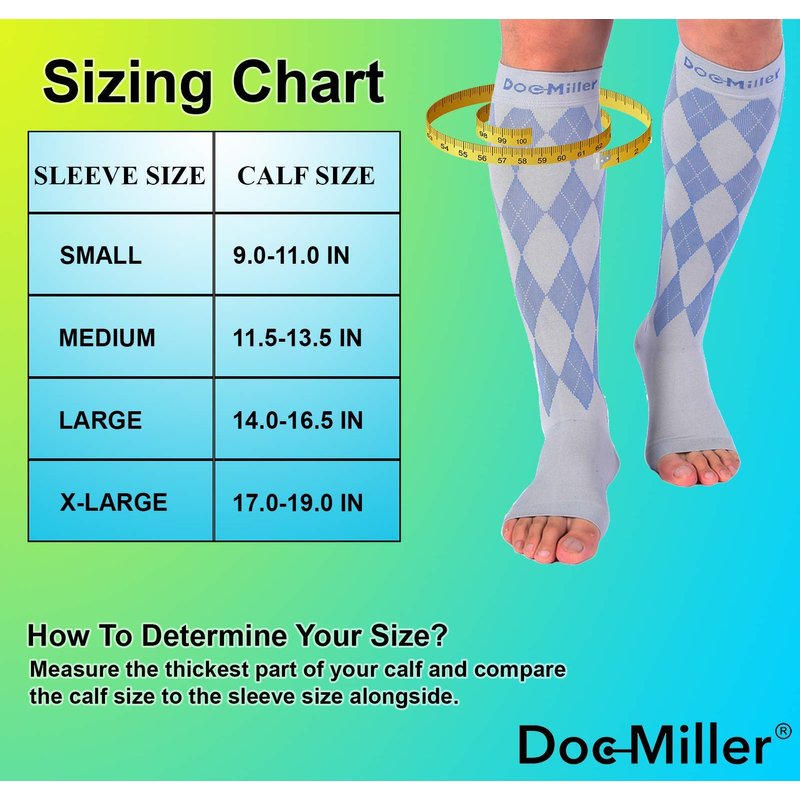 Doc Miller Toeless Compression Socks for Women and Men are designed for recovery from calf, shin splint, spider, and varicose veins. These open toe compression socks for men and women may provide pain relief for sore muscles, plantar fasciitis, and edema. At Doc Miller, we value your money and always strive to provide you with great products that bring the required compression, pain relief, results, and comfort you are looking for.