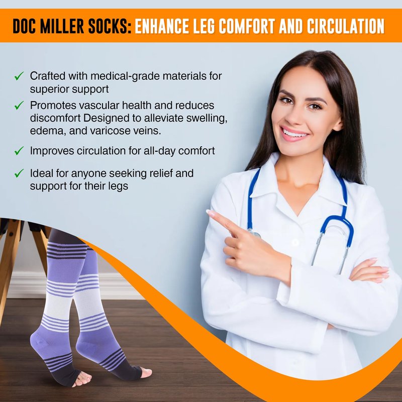 Doc Miller Open Toe Compression Socks Women and Men 20-30mmHg, Toeless Compression Socks Women, Support Shin Splints Calf Recovery, Varicose Veins,1 Pair
