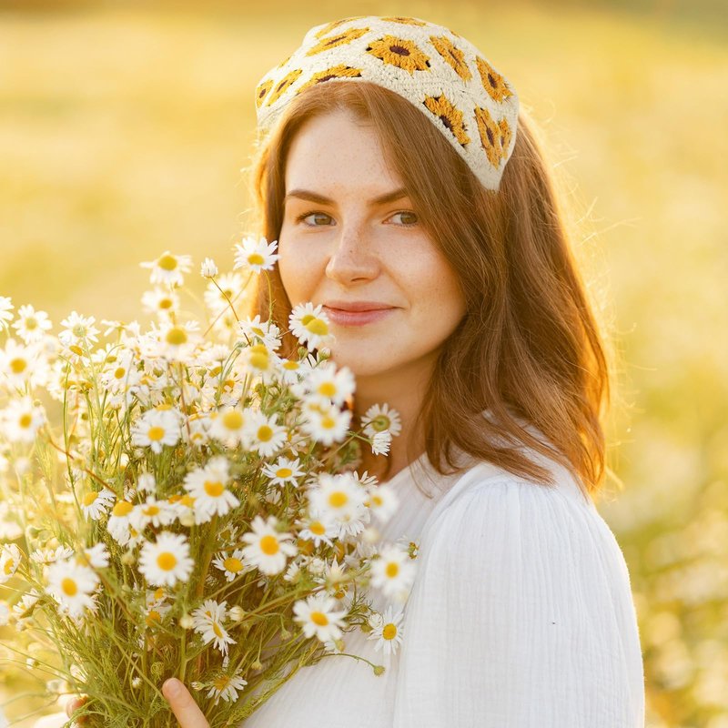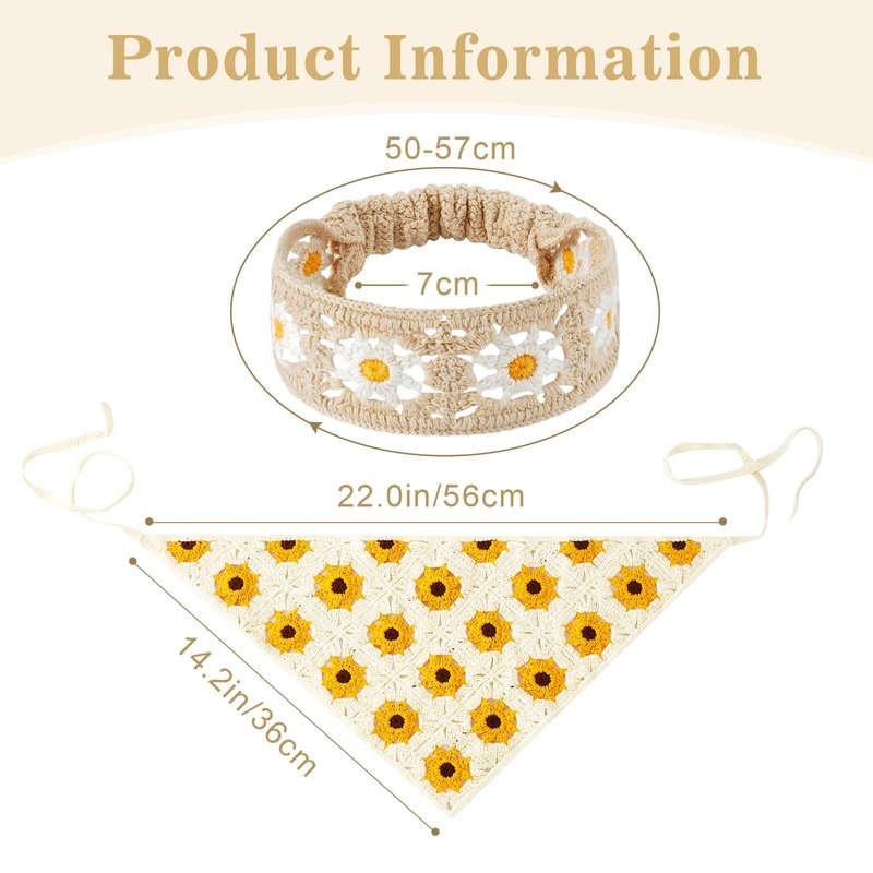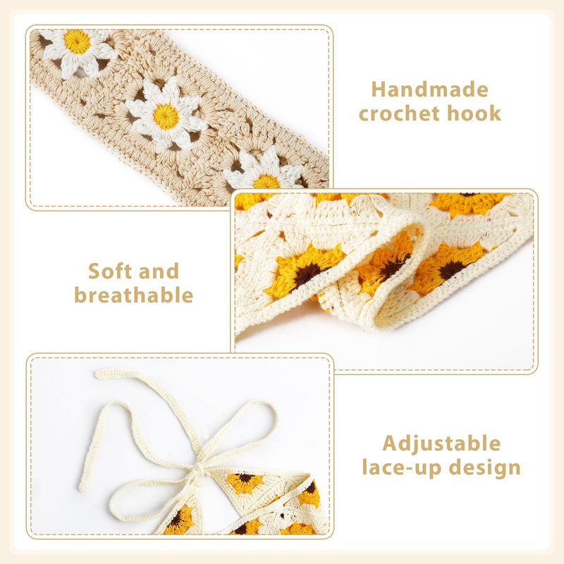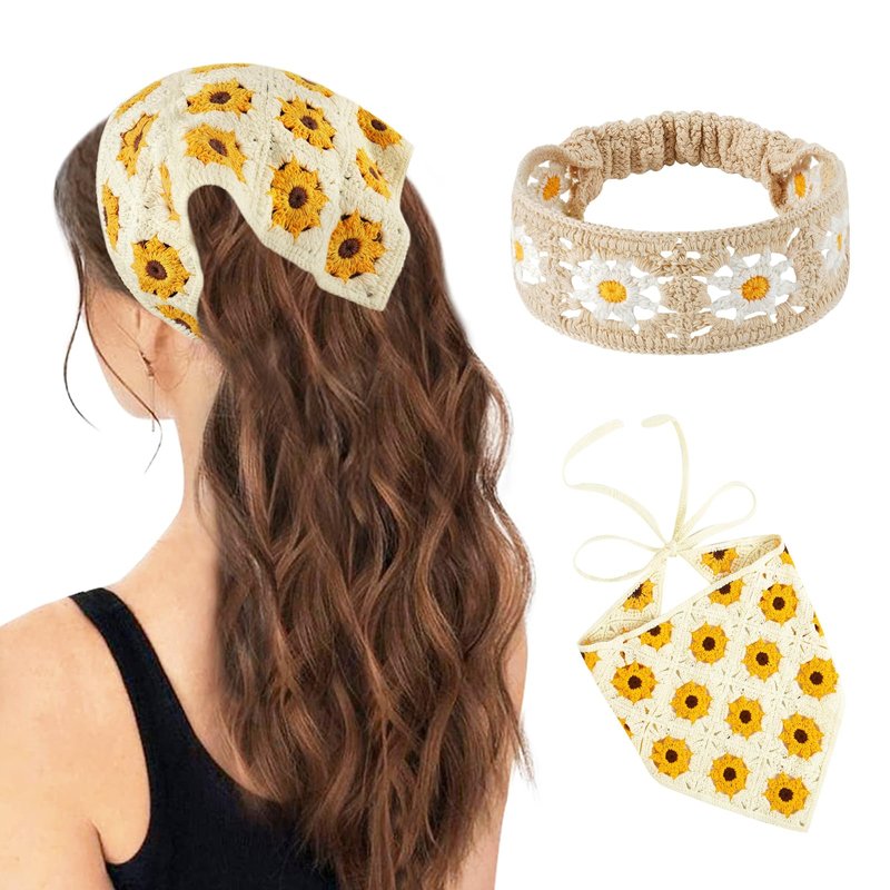 - Stylish Design: 1 Package includes 1 * stylish 70s beige yellow daisy flower head wrap and 1 * sunflower boho wide headbands; Retro and trendy crochet hair bands for women's hair suitable for long hair, straight hair or curly hair.