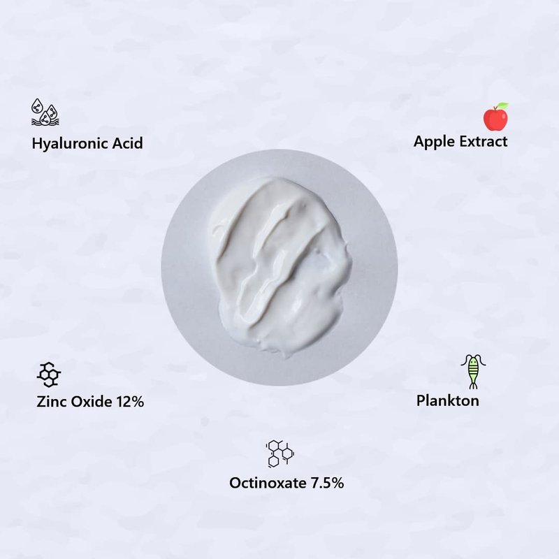 - 🧧{POWERFUL INGREDIENTS} ZINC OXIDE is the physical component of sunscreen. Scatters and reflects UVA & UVB rays. Octinoxate absorbs and filters UVB, not UVA rays, and protects against sun damage. Hyaluronic Acid (GAG) has a unique capacity to bind and retain water molecules. Apple Extract and Plankton fight sun damage and environmental stressors.