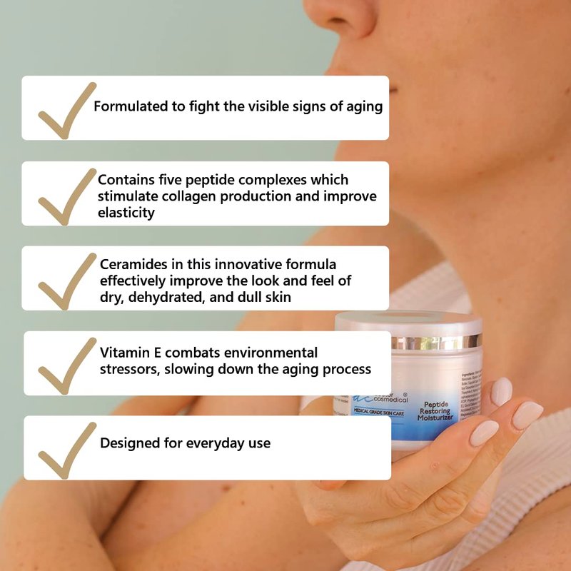 - 🌨 [HOW TO USE] Apply a generous amount to the entire face as needed. Allow absorbing before applying additional products. Can be used twice per day or as needed to hydrate the skin. Our Peptide Restorative Moisturizer is formulated to fight visible signs of aging and reveal a more youthful, healthy glow. Perfect for Dry, Normal, and Sensitive skin.