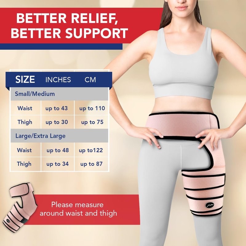 - DOCTOR WRITTEN HANDBOOK: Our hip brace thigh compression sleeve includes a medical handbook with clinical information, physiotherapy exercises, and expert advice on how to maximize productivity at work while exceeding your sports & leisure goals.