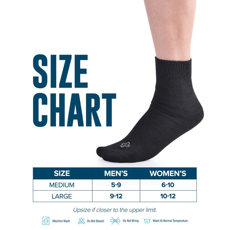 - Sizing Information – Small / Medium size diabetic ankle socks for men for women fits mens size 5-9 and womens 6-10. Large / X-Large size fits diabetic socks for men 9-12 and womens size 10-13.
