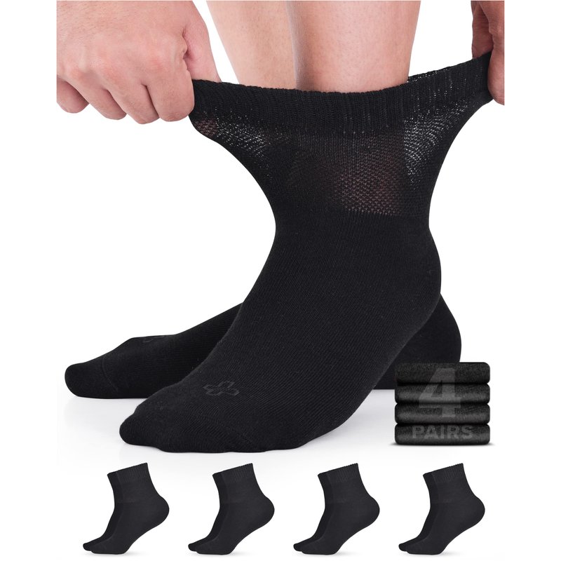 Doctor's Select Diabetic Socks for Women & Men (4 Pairs) | Ankle Black Socks Woman | Non Binding Moisture Wicking Womens Diabetic Socks Size 9-11