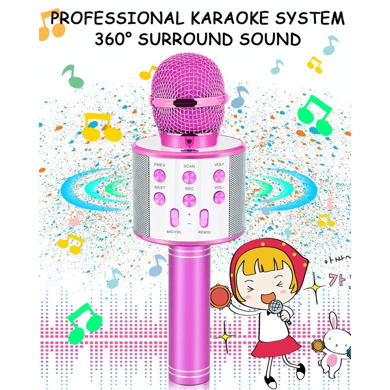 - 𝄞 Magic Sound: The karaoke microphone is interesting toys for kids bringing so much fun! Our karaoke microphone has 4 magical sounds including child voices, tough voices, male voices and honey voices. Let kids enjoy magical singing and glue to this present.