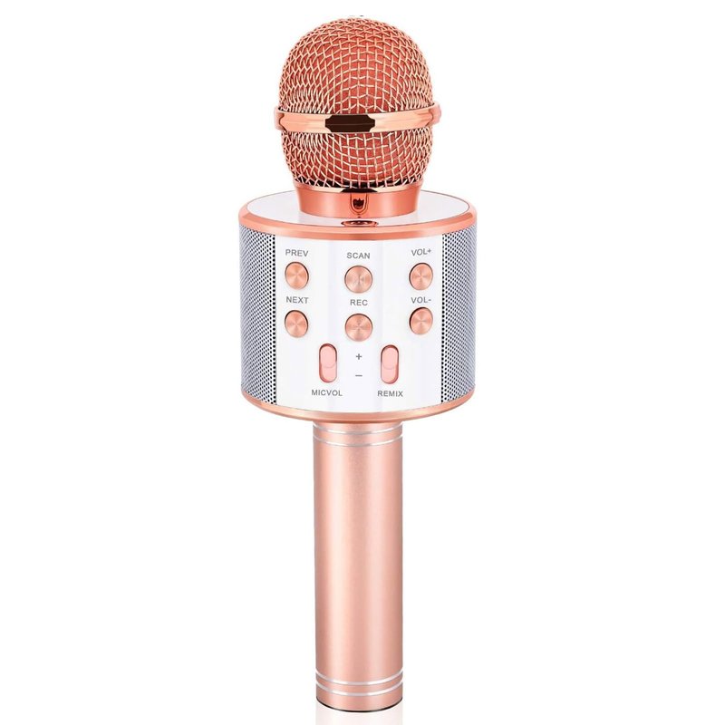 - 𝄞 4 In 1 Multifunctional Microphone: The main function of this Bluetooth microphone is to have fun! It combines the features of Bluetooth microphone with karaoke machine. It can be used as microphone, Bluetooth speaker, recorder. Awesome mini home KTV can play music and sing at any time.