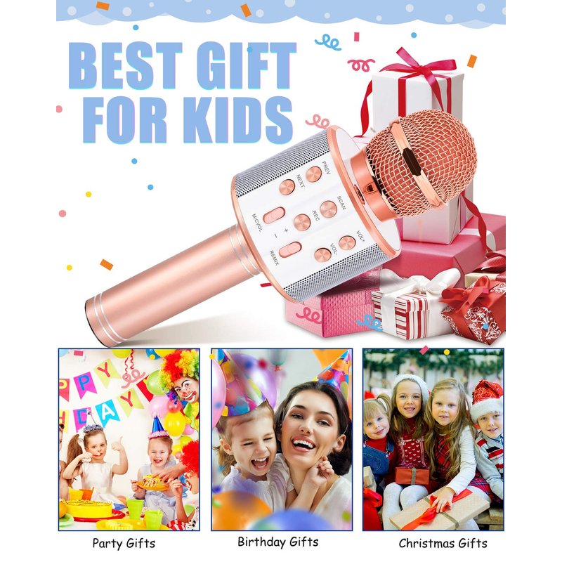 - 𝄞 Best Gifts and Toys for Age 3 and Up: The karaoke microphone packaged in a stylish and beautiful gift box is the best gifts toys for 3 4 5 6 7 8 9 10 year old girls boys suitable for back to school gift, festivals gift, birthday gift, visit gift, Christmas gift, Thanksgiving Day gift, Easter gift and any occasion gift!