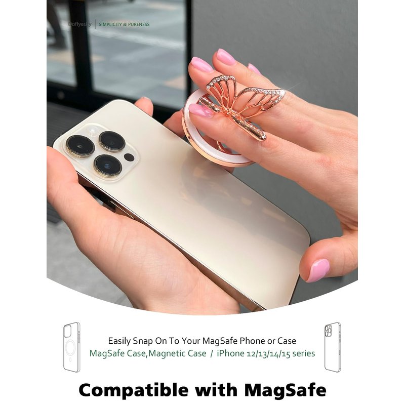 Doflyesky 2024 Upgrade Magnetic Phone Grip Compatible with MagSafe, Butterfly Phone Grip Holder Finger Kickstand for MagSafe, Adapter Ring for MagSafe Included