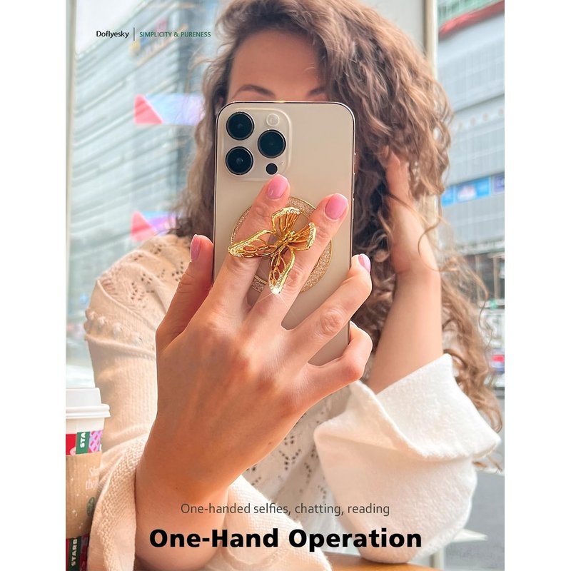 - What You Get: Doflyesky Butterfly Collapsible Magnetic Phone Grip Holder, welcome guide, 24-month stress-free warranty, Tow Metal Rings for MagSafe, and friendly customer service.