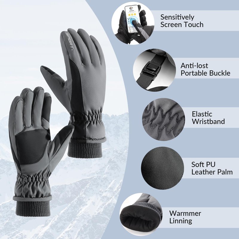 - 🎈 CREATIVE DESIGN - Snow gloves come with anti-loss buckle closure, touchscreen fingertips, reinforced digital grip palms and dry-max waterproof inserts, are all details that give you much higher dexterity and an awesome use experience.